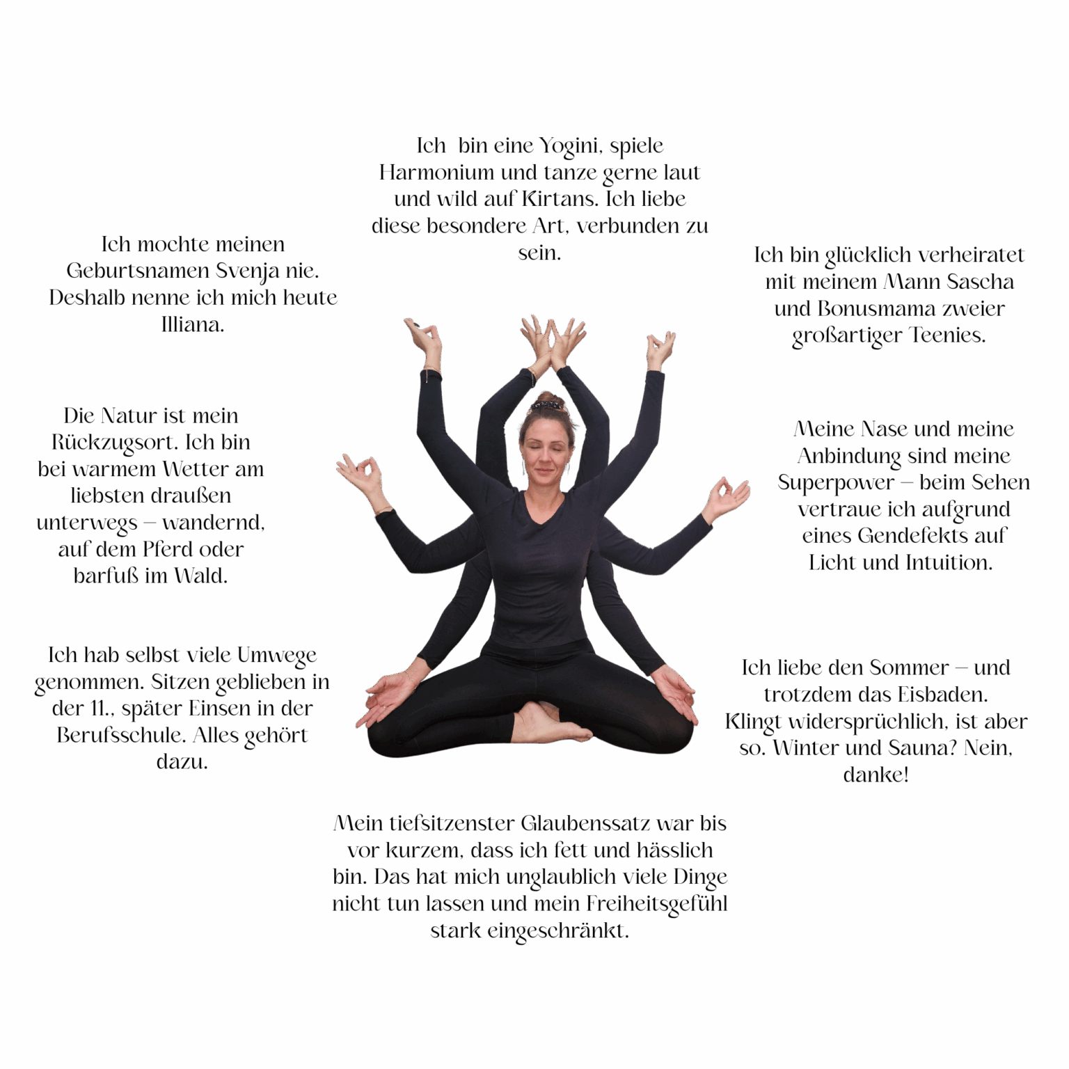 Illiana ist ein wundervoller Mensch. Ihre Arbeit kann ich absolut weiterempfehlen. Sie bringt mit ihrem Wesen so viel Licht, Freude und Leichtigkeit in das Thema. Ihr Wissen ist wissenschaftlich fundiert und ihre eigene Praxiserfahrung ist bereichernd. Falls ihr nach mehr Lebensqualität und Zufriedenheit sucht, seid ihr bei ihr an der richtigen Adresse.